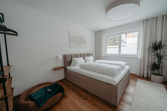 Zwei separate Schlafzimmer – je mit Frame-TV & Blick ins Grüne